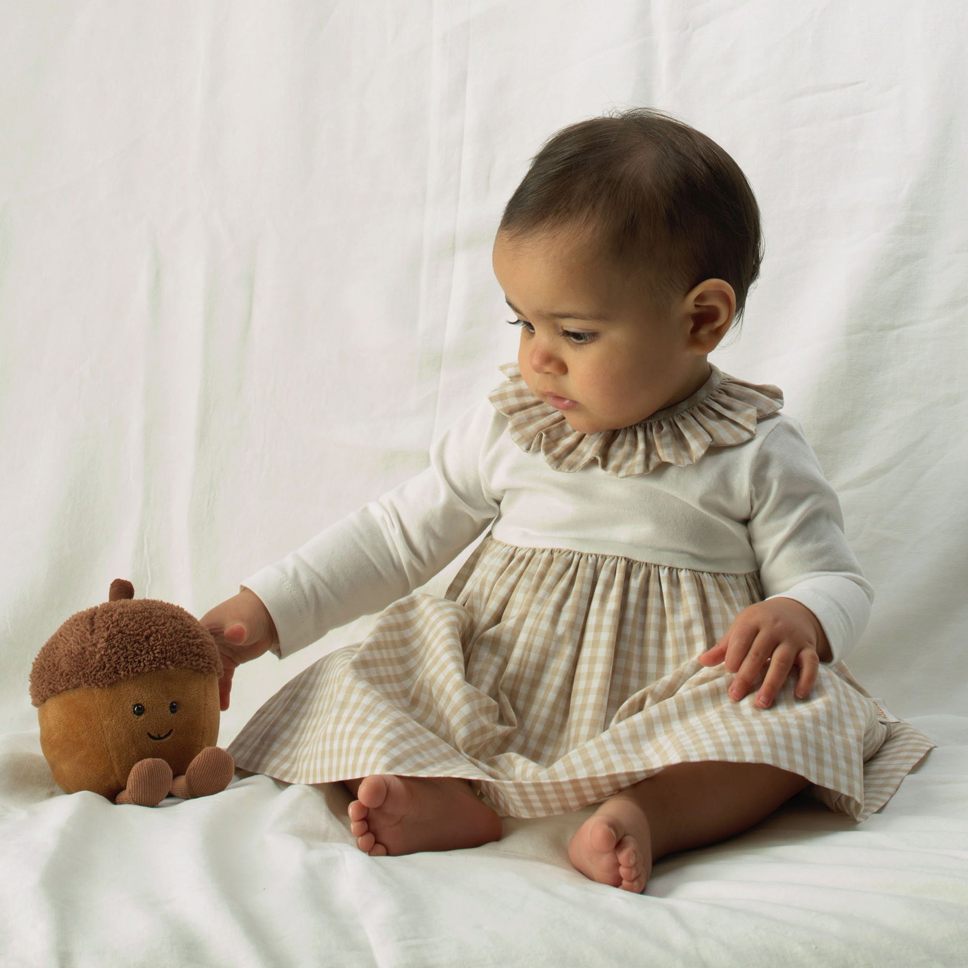 The perfect seasonal dress or birthday outfit for little girl, featuring a beautiful scalloped collar.