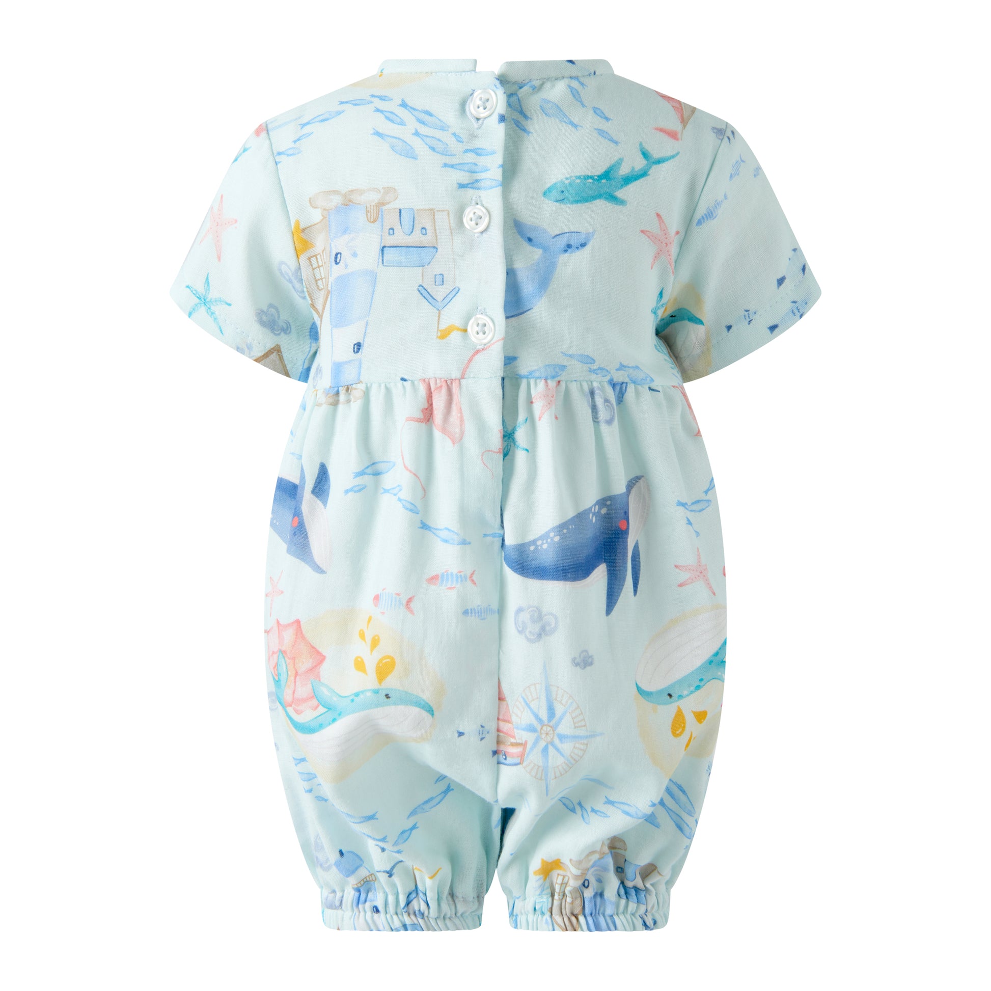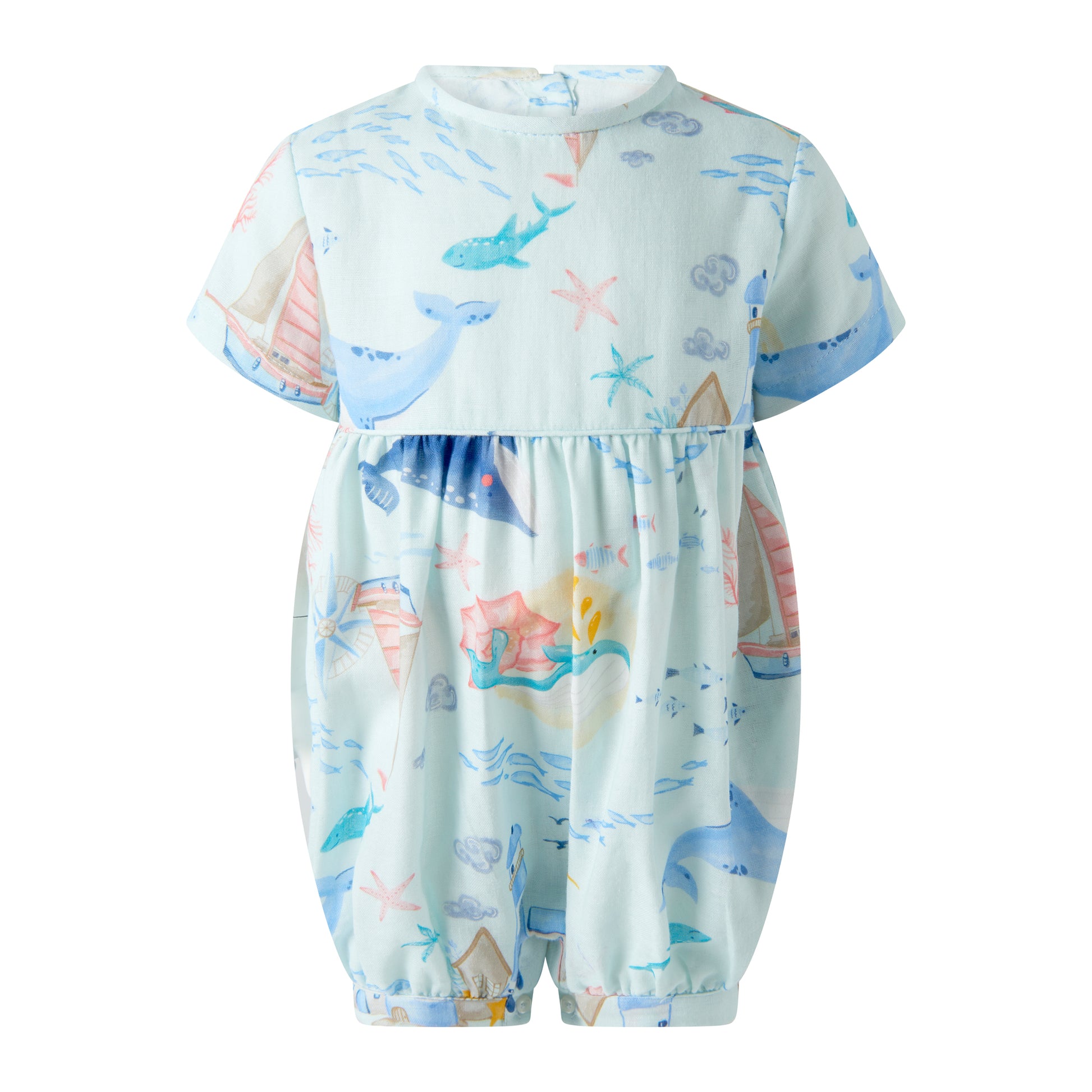Light-weight fabric. Button closure on the back and at inner leg for easy changing.